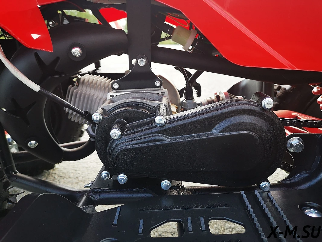 Двигатель данной модели, двух-тактный с рабочим объемом 70куб.см, выдает немыслимую для данного уровня квадроциклов мощность 5 л.с с центробежное сцепление c керамико-наполненным фрикционными дисками, коробка передач серии PRO-SPORT . Мотор запускается с помощью электростартера, также имеется ручной запуск. Подача топлива осуществляется Японским карбюратором.