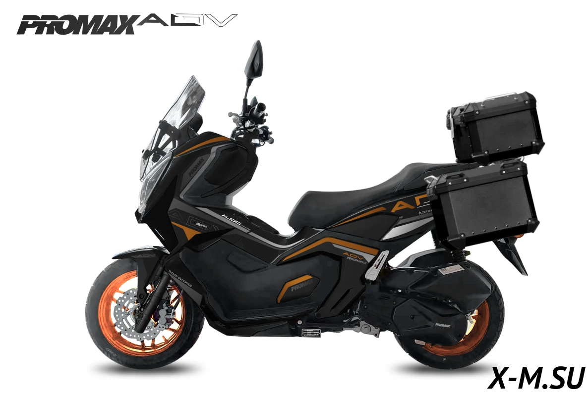МаксиСкутер PROMAX ADV создан на базе модели кросс-скутера HONDA ADV. Компания PROMAX сотрудничает с HONDA и предлагает более доступный, но качественный аналог скутера HONDA ADV EFI.